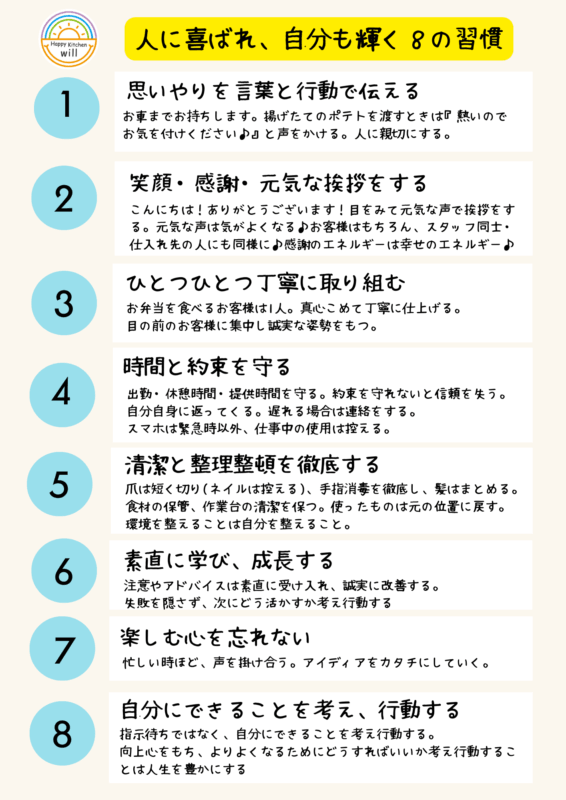 スタッフが“ここで働くことで輝けるようになるための習慣”。